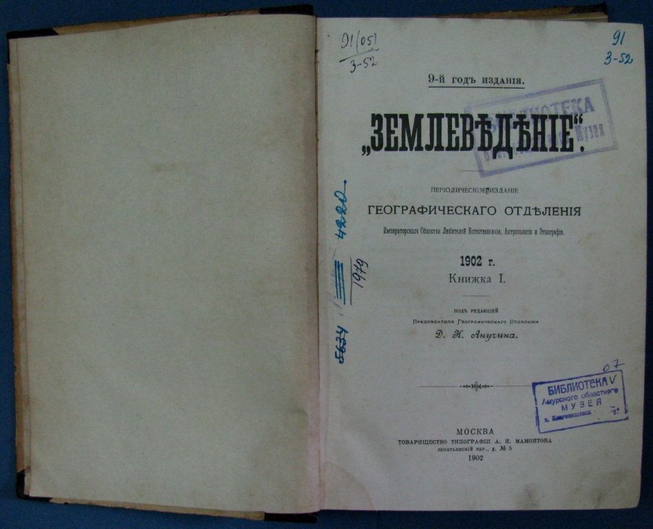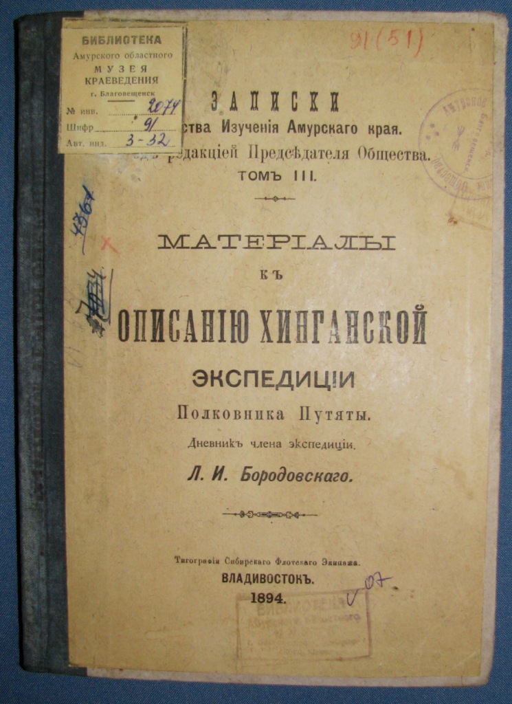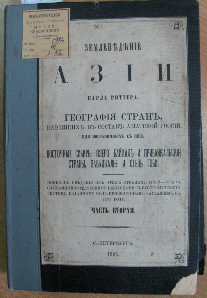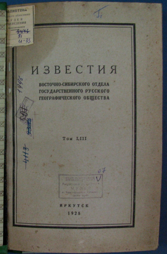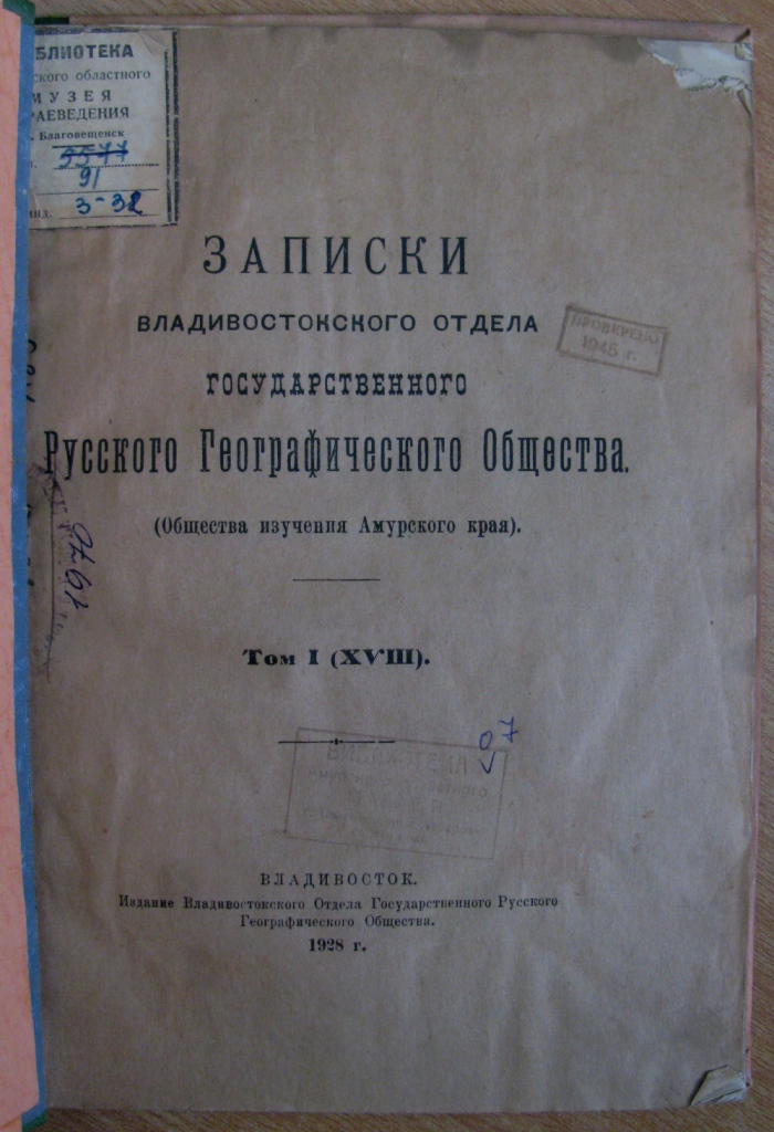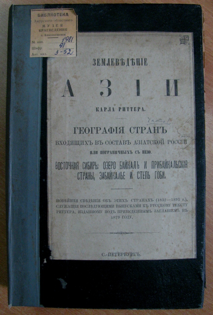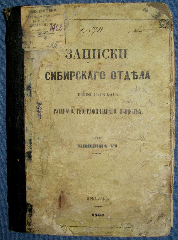 В книжный фонд поступили книги, изданные русским Географическим обществом в 1863 – 1930 гг. В книгах представлена информация по истории Сибири, Забайкалья, Дальнего Востока, стран Маньчжурии и Кореи. Данные издания являются библиографической редкостью, выпускались малым тиражом и сохранились в единичных экземплярах,