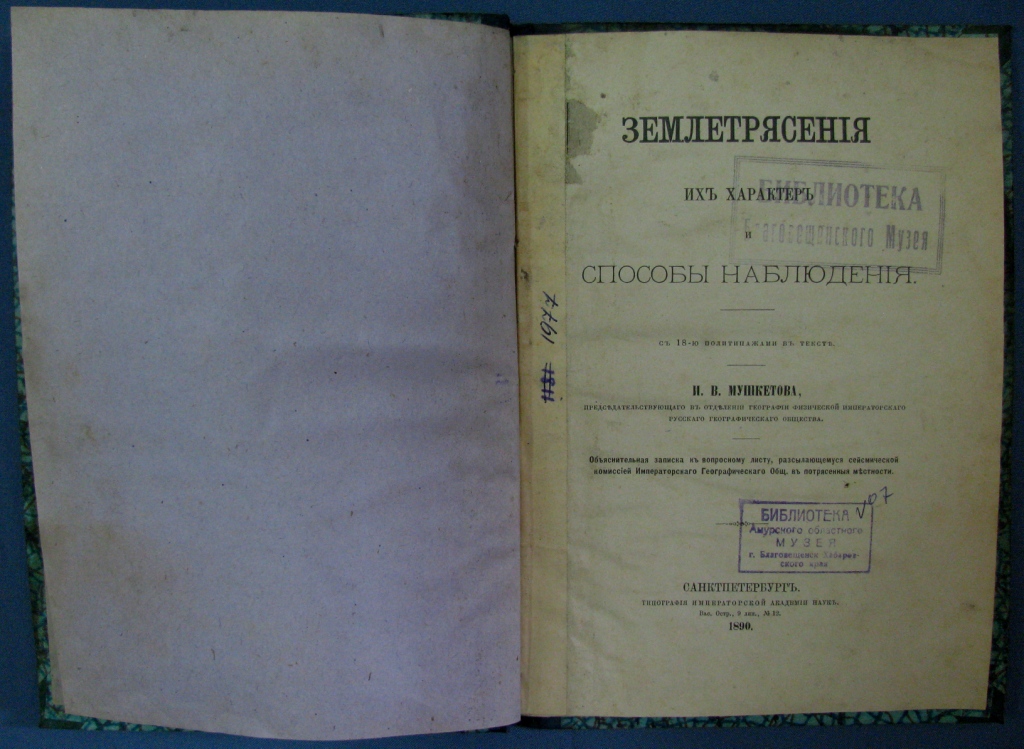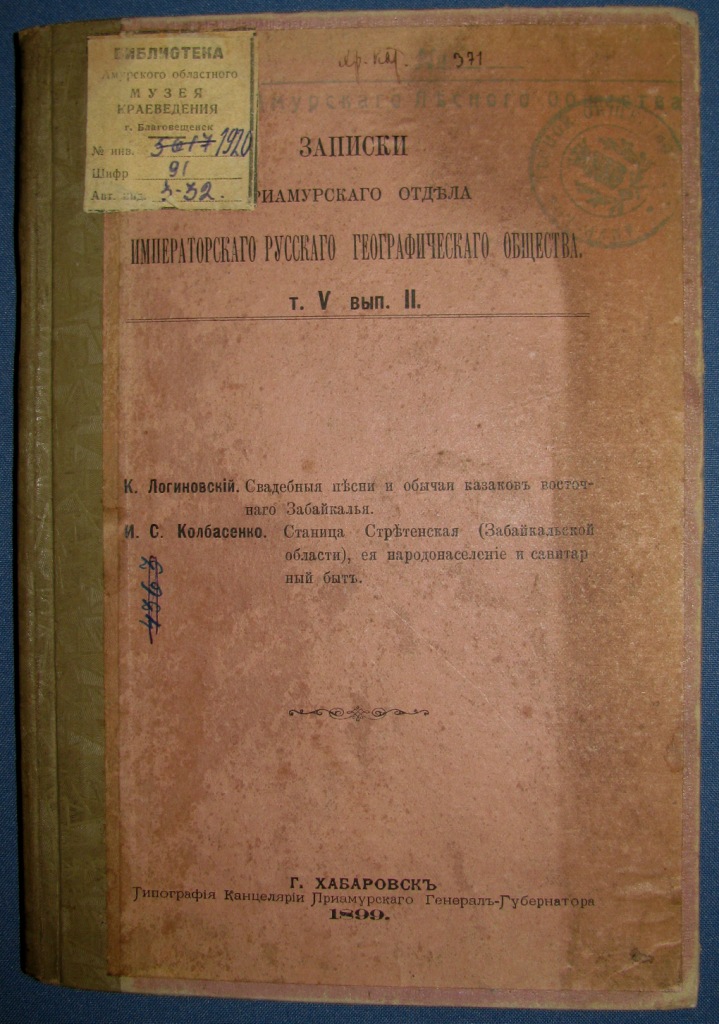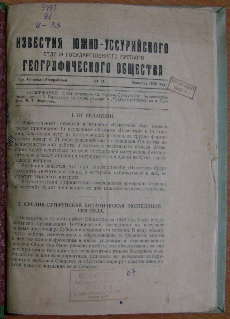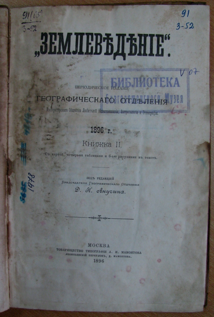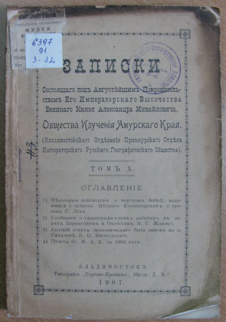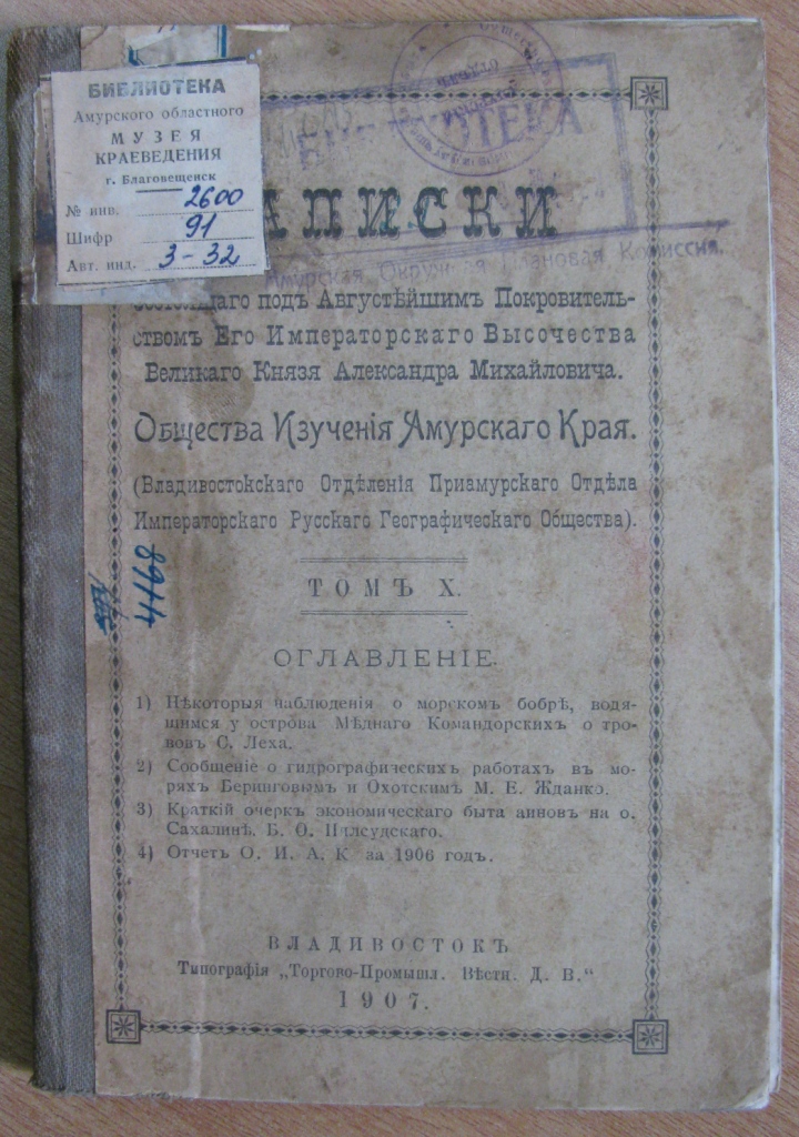 В книжный фонд поступили книги, изданные русским Географическим обществом в 1863 – 1930 гг. В книгах представлена информация по истории Сибири, Забайкалья, Дальнего Востока, стран Маньчжурии и Кореи. Данные издания являются библиографической редкостью, выпускались малым тиражом и сохранились в единичных экземплярах,