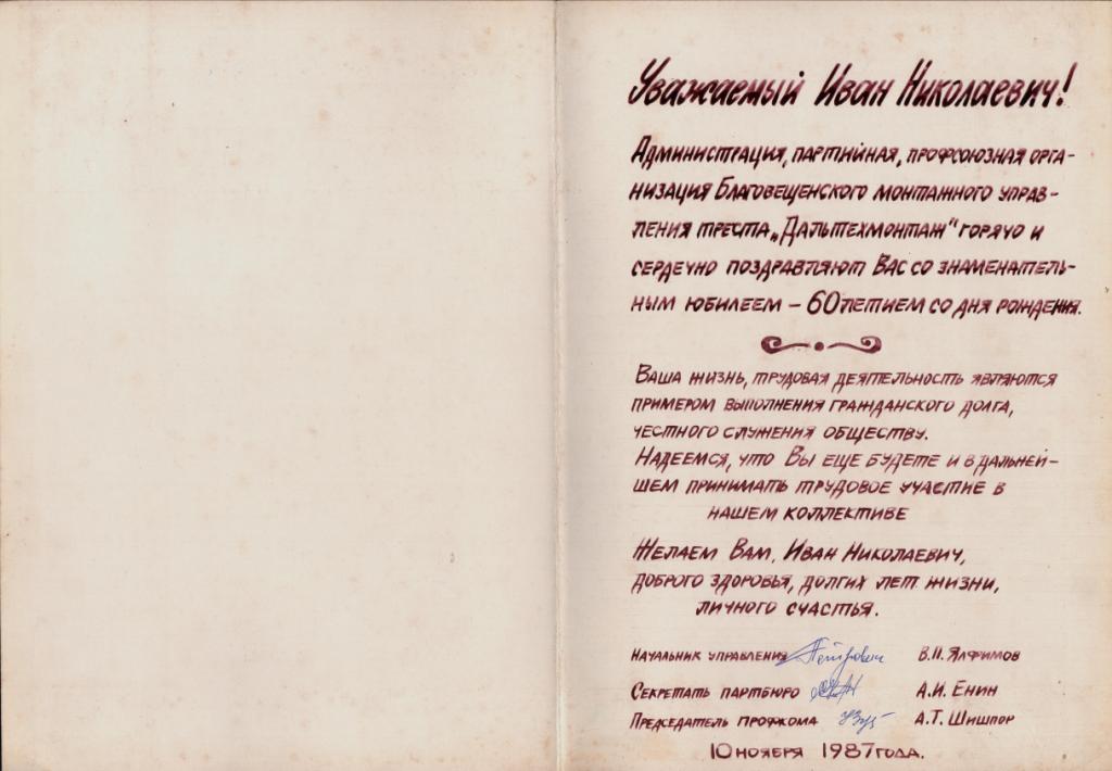 Фотографии и документы своих родственников передала в музей Замяткина Людмила Владимировна, жительница г. Благовещенска. Материалы имеют историко-краеведческое значение, т.к. представляют жизнь жителей Амурской области — семей Верещагиных, Галактионовых, Девятовых за период с 1900-х по 1989 гг.