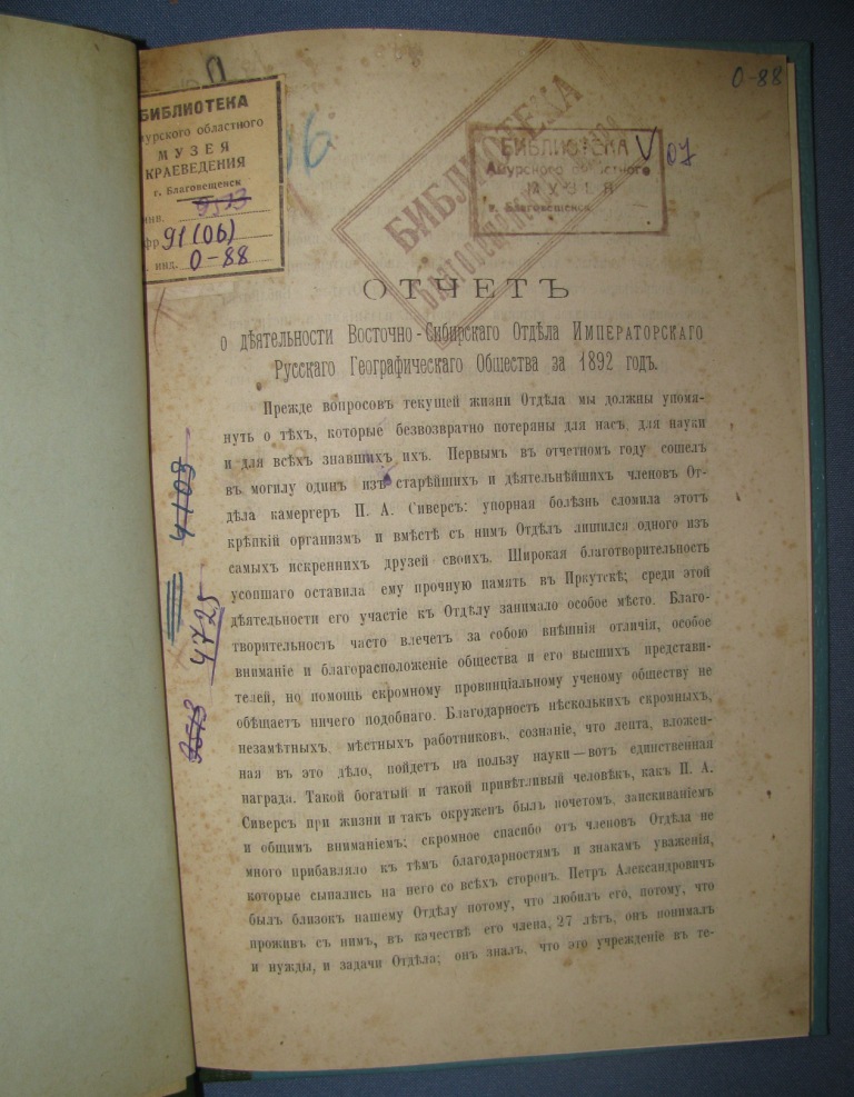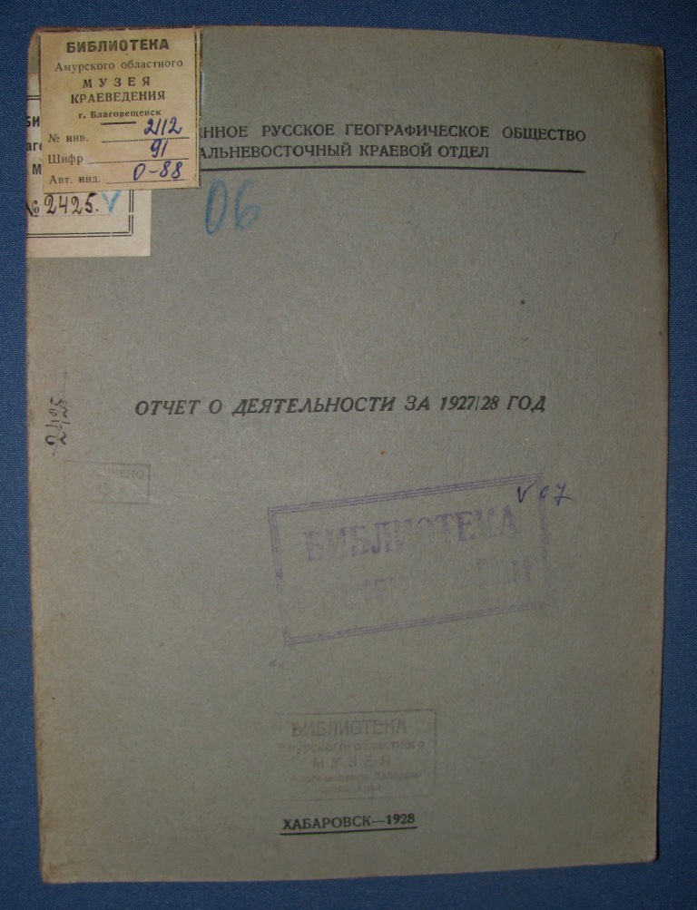 В коллекцию редких книг поступили интересные издания 1984 – 1929 гг. Это книги и брошюры, посвящённые изучению географии Азиатской части Российской Империи и СССР; отчеты о деятельности Дальневосточного Государственного Русского Географического Общества.