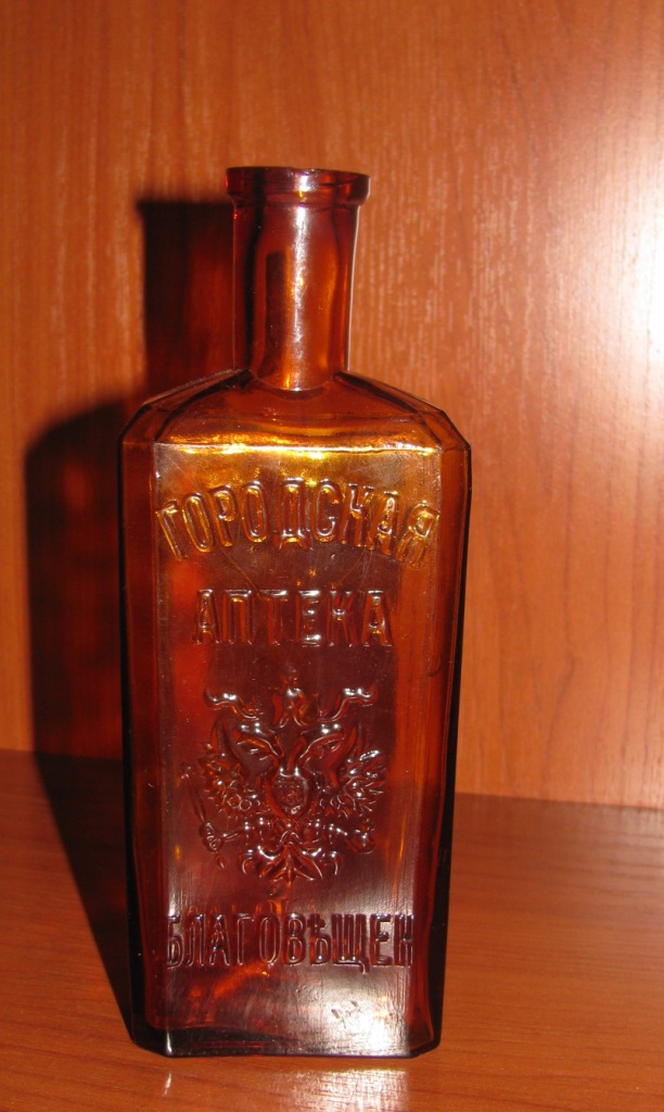 Коллекция «Фарфор, фаянс, стекло» пополнилась разнообразными стеклянными флаконами, которые передали жители Благовещенска Куксова Елена Константиновна и Субботина София Игоревна. Это аптечный флакон с надписью «Городская аптека. Благовещен.», бутылка фигурной формы с надписью «Тво Хлҍбниковъ и Ко», изготовленные в Российской империя в нач. ХХ в. Не менее интересны бутылки, баночки, пузырьки советского производства.
