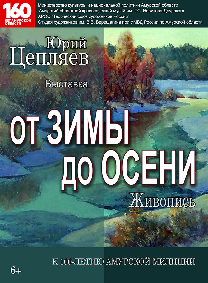 28 марта 2018 г. в Амурском областном краеведческом музее им. Г.С. Новикова-Даурского (зал № 19) открывается персональная выставка члена Амурской региональной общественной организации «Творческий союз художников России» Юрия Ивановича Цепляева «От зимы до осени».