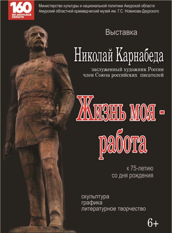3 апреля 2018 г., в 15.00, в Амурском областном краеведческом музее (зал №22) откроется выставка «Жизнь моя – работа», посвященная 75-летию со дня рождения заслуженного художника России, члена Союза российских писателей Николая Леонтьевича Карнабеды.