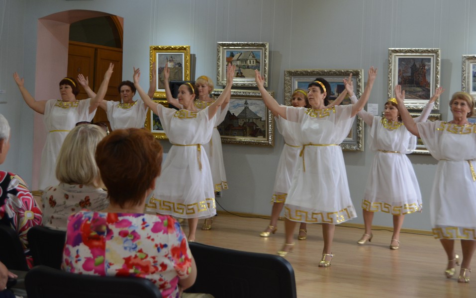 Танцевальная группа «Татьяна», занятия которой проходят в музее, подготовила и исполнила свои самые яркие номера: зажигательный греческий танец «Сиртаки», пластичный китайский «Танец с веерами», страстное «Танго», динамичный казачий перепляс.