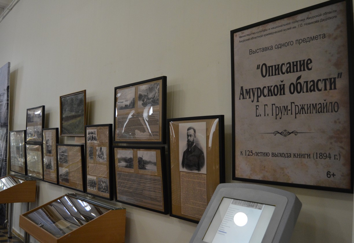 19 февраля в Амурском областном краеведческом музее открылась выставка, посвящённая 125-летию выхода в тираж известного труда «Описание Амурской области» (1894 г.), составленного географом и зоологом Е.Г. Грум-Гржимайло.