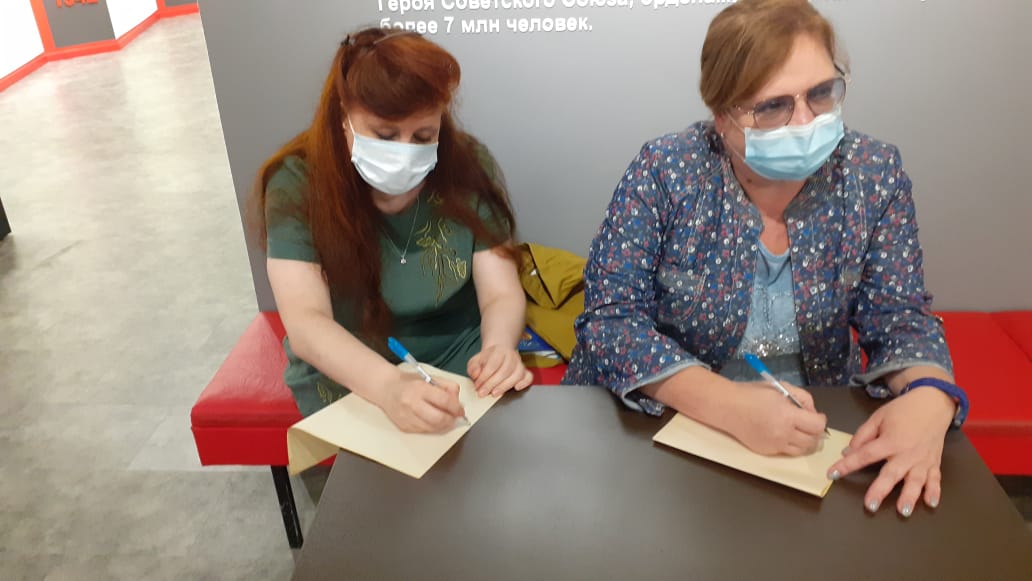 18 августа 2020 г. молодой специалист экспозиционного и выставочного отдела Елизавета Шеломихина провела первую экскурсию «И в памяти останутся навеки события военных страшных лет…» в рамках конкурса. Экскурсия в формате театрализованного интерактивного мероприятия прошла в зале «Начало войны».
