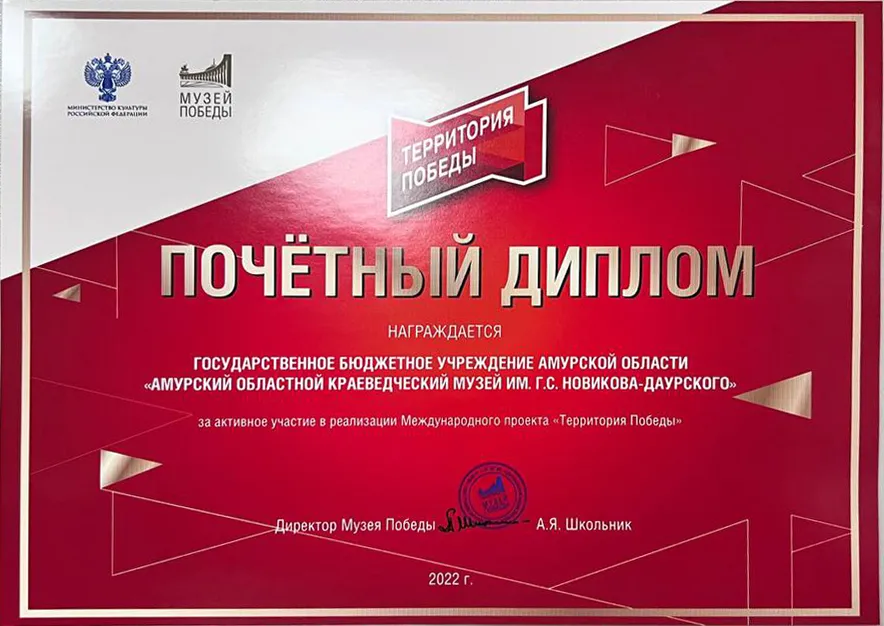 Сотрудничество Амурского областного краеведческого музея им. Г.С. Новикова-Даурского с Музеем Победы способствует укреплению памяти о Великой Отечественной войне, поднятию национального духа.