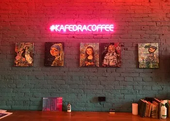 Всего в кафе поселилось около 11 картин, из них — пять оммажей. К слову, работы-подражания еще нигде не выставлялась. Так что здесь впервые можно увидеть носатеньких Мона Лизу и с девушку с жемчужной сережкой.