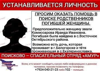 Возможно, у амурчанки есть дочь, которая проживает в Белогорске, и тетя, проживающая в Екатеринославке Октябрьского района.