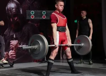 Юноша поднял на бицепс штангу весом в 61 килограмм