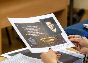 Изготовил мемориальную доску Юрию Ландышеву член Союза художников России Павел Никиткин.