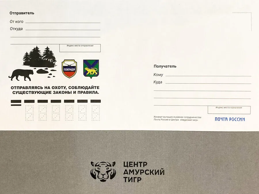 Центр «Амурский тигр» совместно с Почтой России разработали специальные конверты, которые будут рассылать нарушителям правил и законов об охоте, сообщает пресс-служба Центра. Как отметил первый заместитель министра лесного хозяйства и охраны объектов животного мира Приморья Алексей Суровый, профилактика нарушений, а также обеспечение исполнения наказания за преступления являются не менее важной частью работы охотнадзора.
